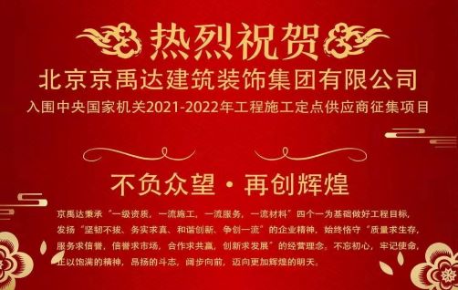 喜讯|京禹达中标中央国家机关2021-2022年工程施工定点供应商