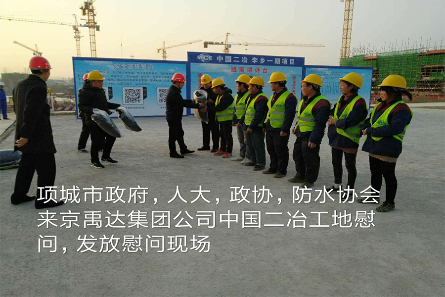 春节将至,岁寒情深。近日,市人大常委会主任刘体峰,市政协副主席、防水协会会长王养岭一行,驱车近三百公里,来到安徽省淮北市濉溪县李乡安置房建设工地调研,并看望慰问了在工地施工的项城防水工人。 在施工现场,中国二治集团公司华东分公司副总经理刘鸿孝、总会计师姜志伟、项管部部长孔德广、项目部总经理敖明杰、......