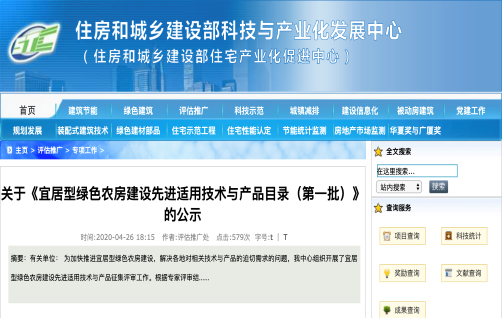 为加快推进宜居型绿色农房建设,解决各地对相关技术与产品的迫切需求的问题,4月26日,住房和城乡建设部科技与产业化发展中心组织开展了“宜居型绿色农房建设先进适用技术与产品”征集评审工作。根据专家评审结果以及对近年来优秀科技成果筛选,编写完成了《宜居型绿色农房建设先进适用技术与产品目录(第一批)》,并予以......