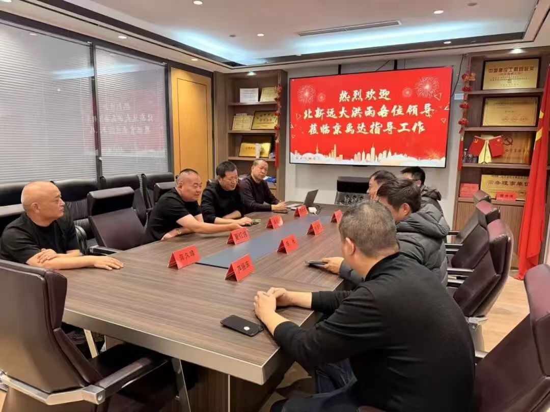 交流期间,京禹达集团董事长夏红伟对公司发展历程、业务布局、工程案例及服务理念作详细汇报。北新远大洪雨各位领导认真听取、细致问询,对京禹达在建筑装饰领域的专业深耕与稳健发展给予充分肯定,并围绕行业标准、技术创新、市场拓展等方面提出宝贵指导意见,为京禹达进一步优化管理、提升品质、拓宽合作指明方向。