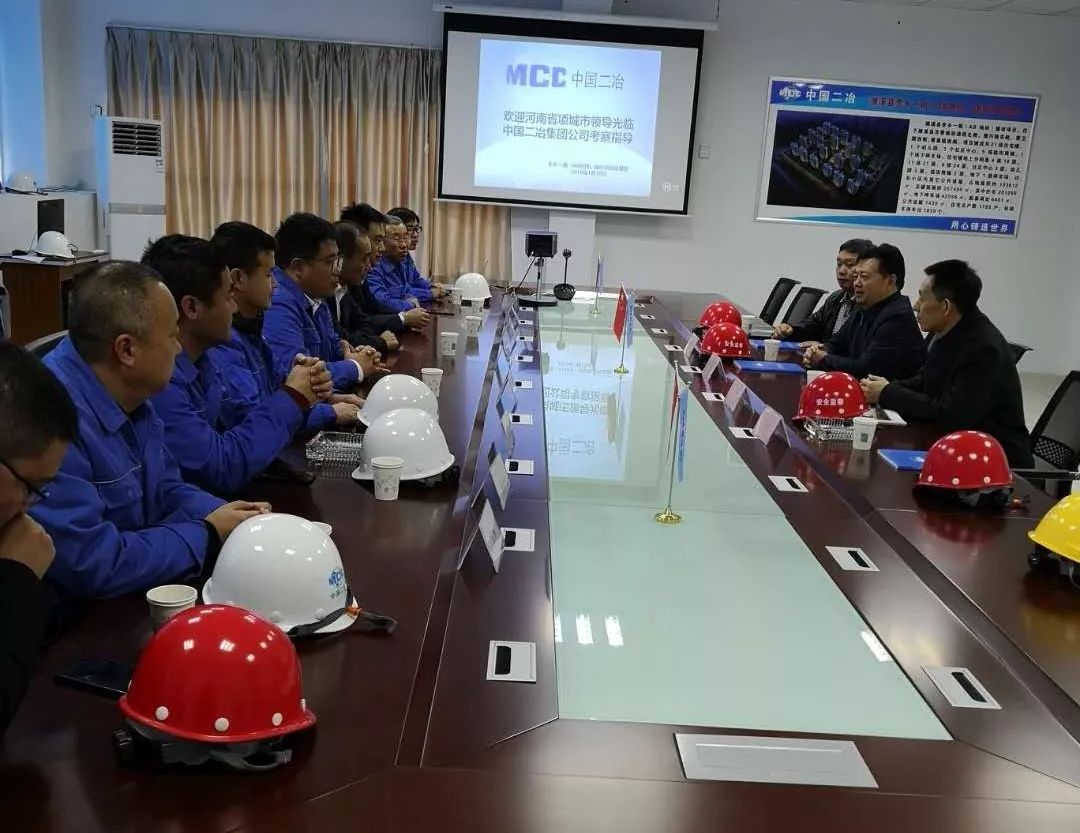 在施工现场,中国二治集团公司华东分公司副总经理刘鸿孝、总会计师姜志伟、项管部部长孔德广、项目部总经理敖明杰、党支部书记闫鹏等公司领导向刘体峰、王养岭分别介绍了中国二冶集团公司以及该项目的基本情况。