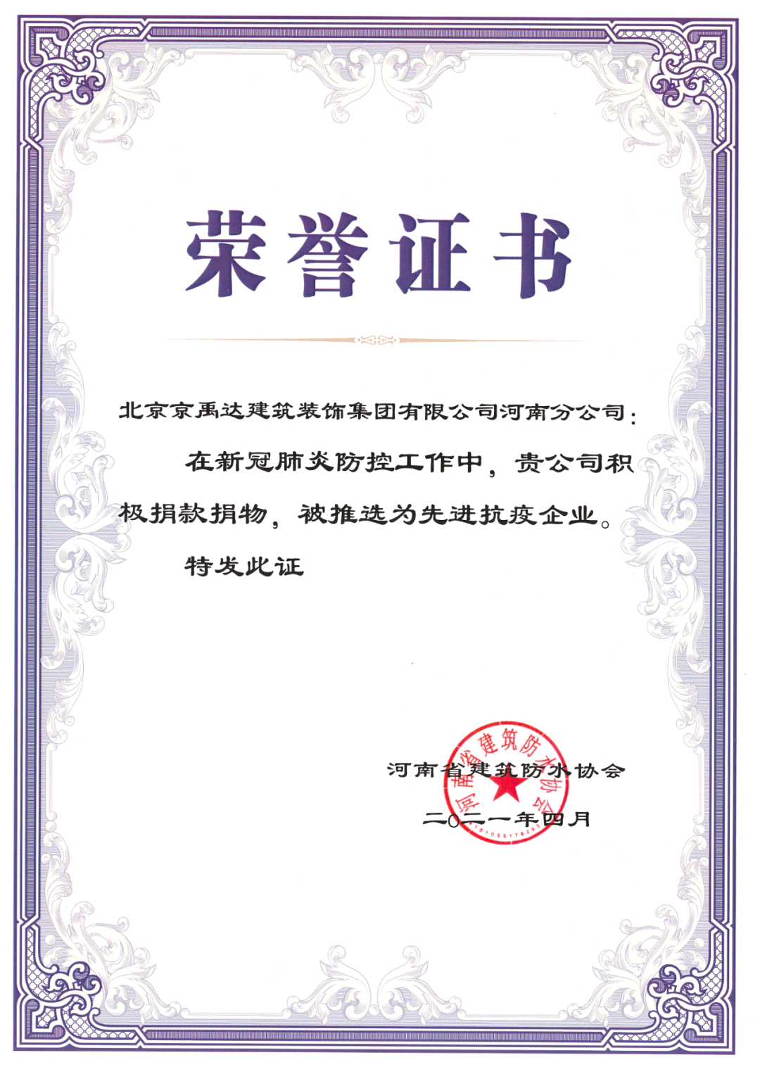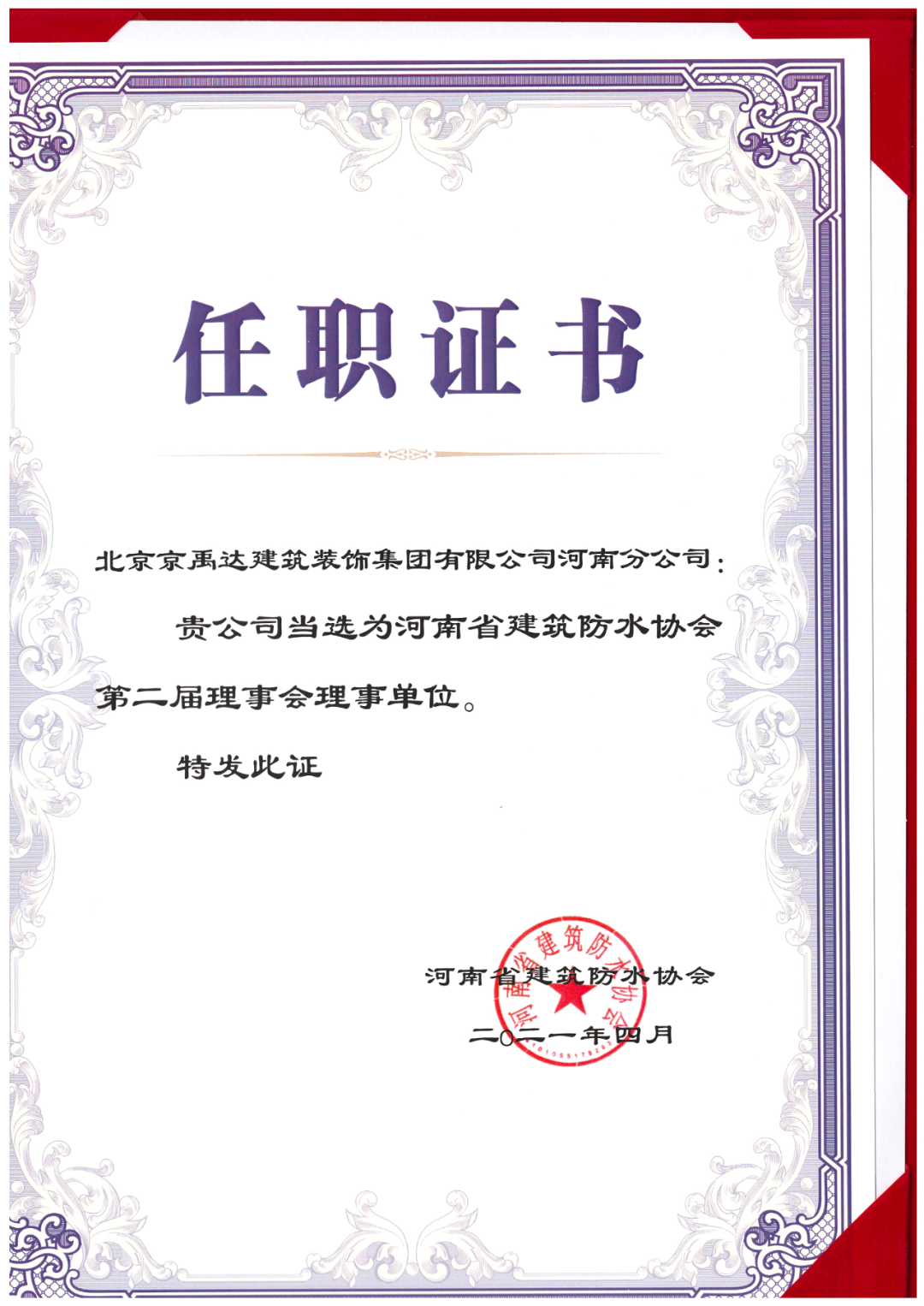 此次会议,京禹达荣获优秀施工企业,先进抗疫企业两项荣誉,并当选为河南省建筑防水协会第二届理事会理事单位。