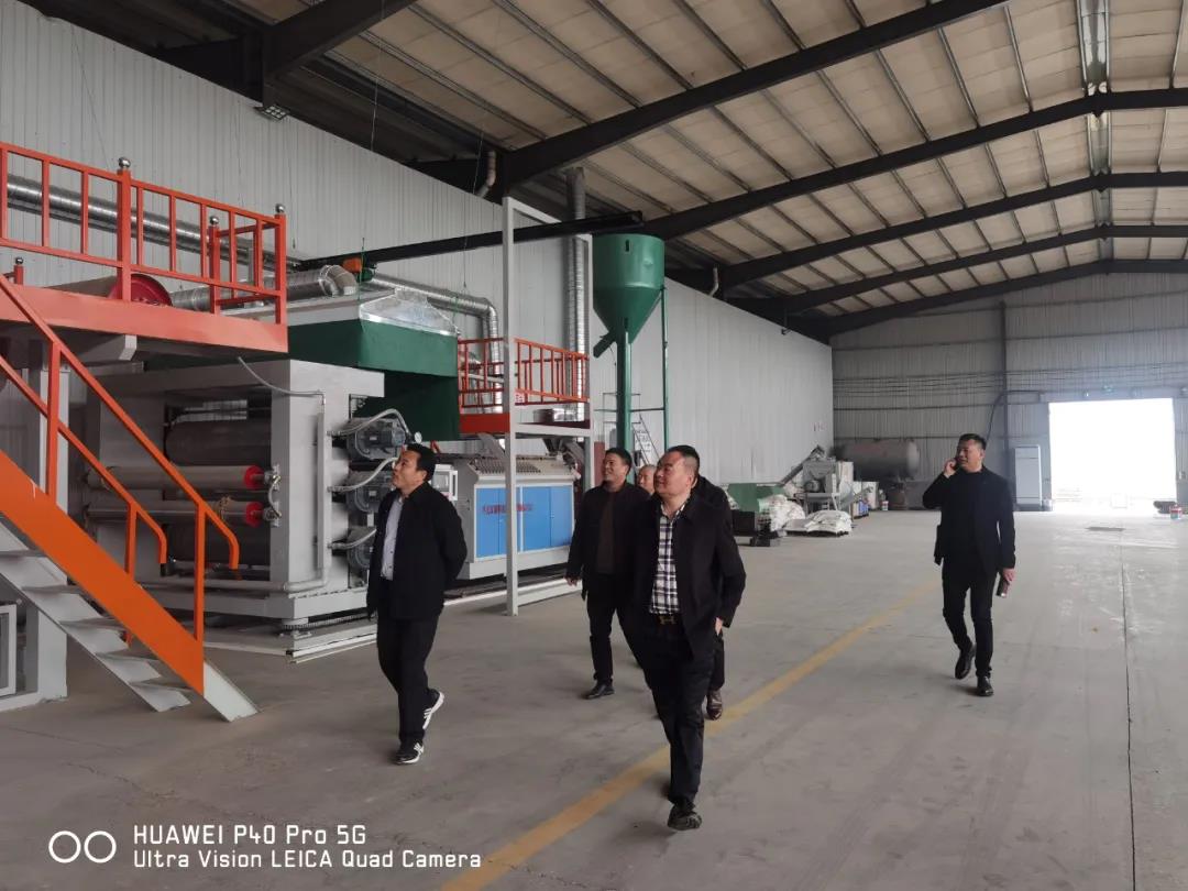 在定州防水生产基地总经理带领下,董事长夏红伟与各分公司领导共同参观考察了防水材料库、检验室、卷材生产车间等,就防水卷材检测方法、检测标准、检测设备等专业问题做了沟通交流。