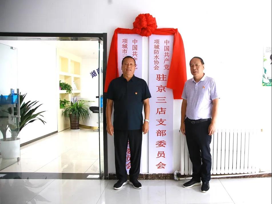 最后,举行了揭牌仪式。由王尽伟、夏威峰为中共三店镇在京务工创业人员党支部揭牌;由王兆峰、崔永生为中共项城防水协会驻京三店党支部揭牌!