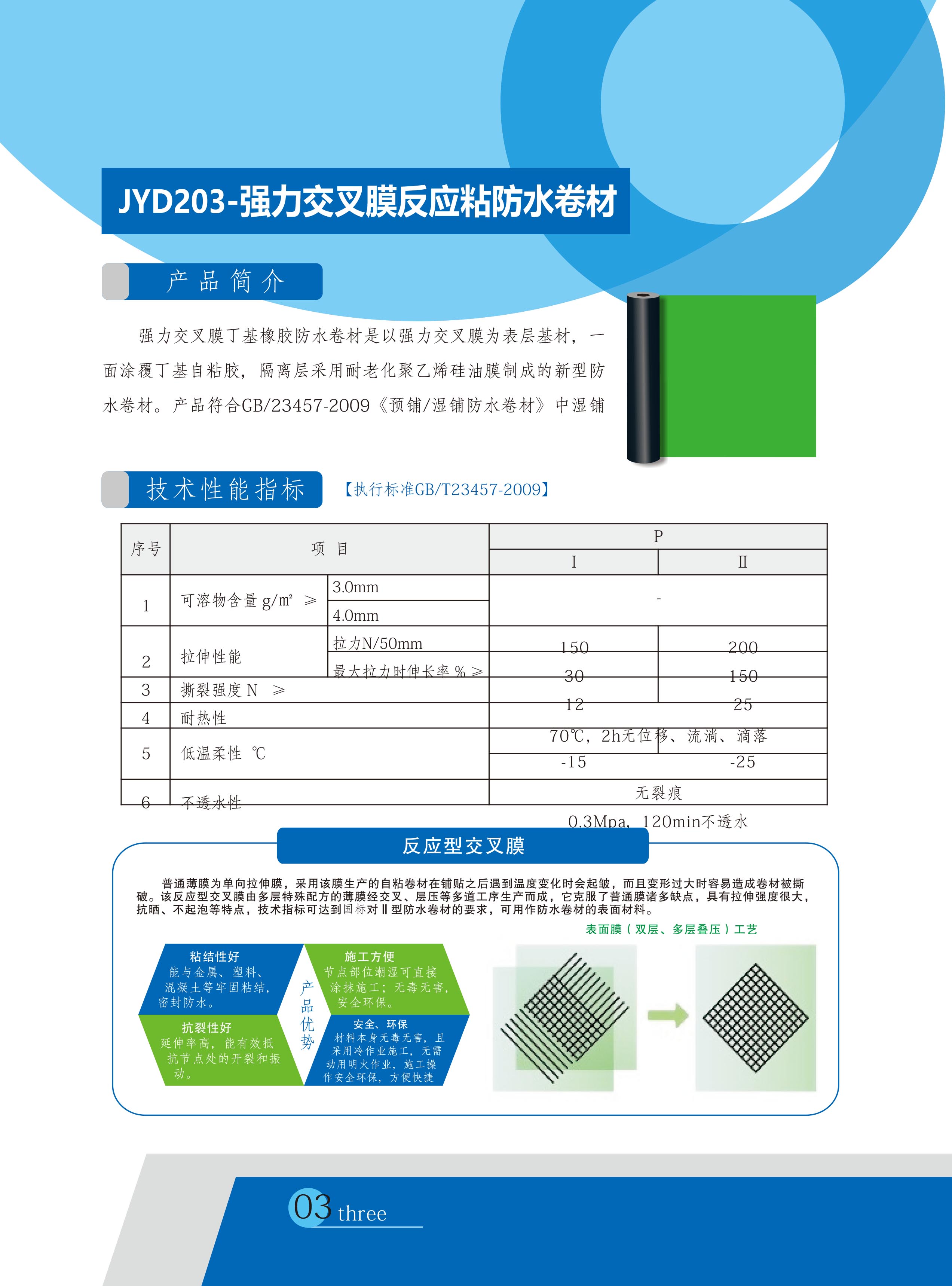 JYD203-强力交叉膜反应粘防水卷材